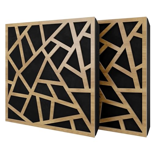 2-pack — Diffus ljudabsorberande akustisk panel med sammetstyg och monteringssats | 50 x 50 x 5 cm | Reflektion - ljudisolering | Hemakustisk behandling [SKYROSS - ek | svart]
