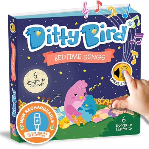 DITTY BIRD Bedtime Songs Ljudbok - Bebisleksak med musik och ljud. 6 ljud knappar för att lära sig engelska. Perfekt för tvåspråkiga barn från 1 år.