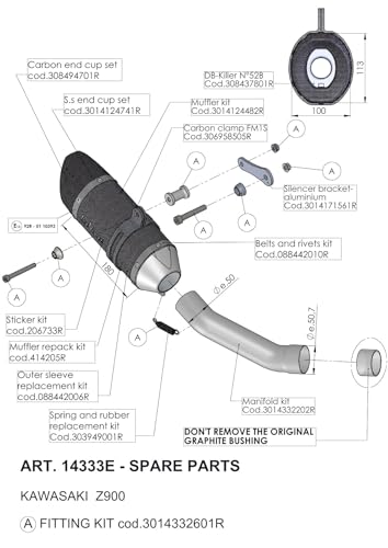 Ljuddämpare reservdel set LeoVince ljuddämparskydd avgassystem, kol, 100 x 115 mm 370 mm
