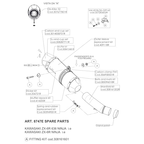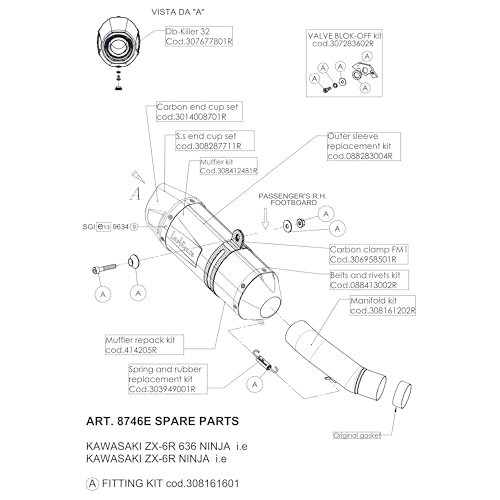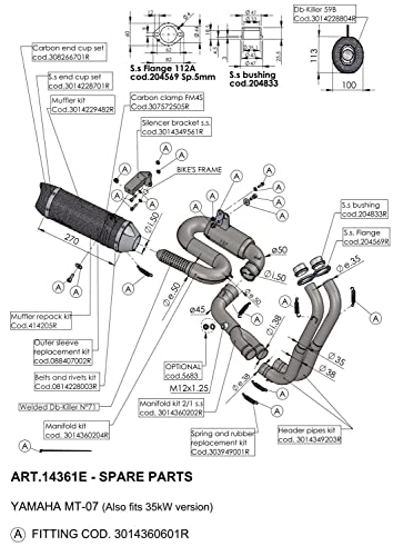 Ljuddämpare reservdel set LeoVince ljuddämparskydd avgassystem LV CORSA, svart, 160 mm, höger för Yamaha R6