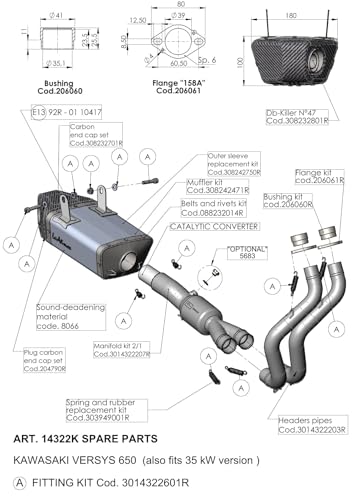 Ljuddämpare reservdel set LeoVince ljuddämparskydd avgassystem, kol, 160 mm, höger
