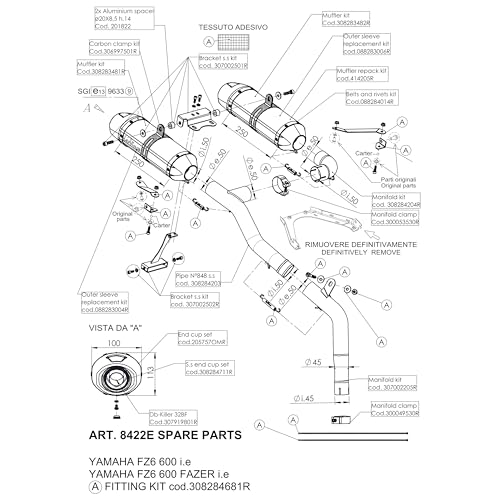 Ljuddämpare reservdel set LeoVince ljuddämparskydd avgassystem, 300 mm, höger