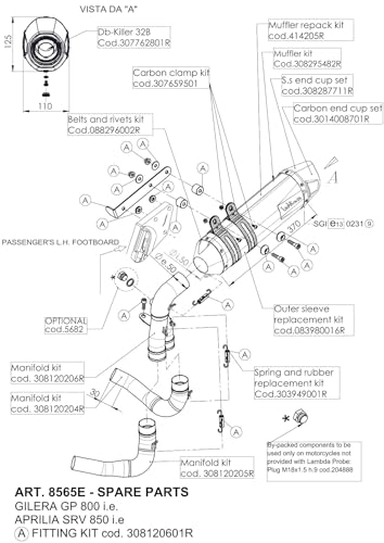 Ljuddämpare reservdel set LeoVince ljuddämparskydd avgassystem LV ONE EVO, 250 mm, höger