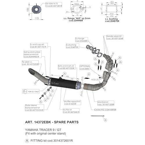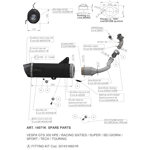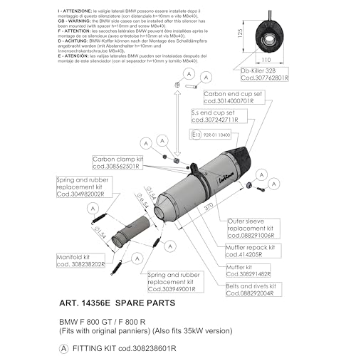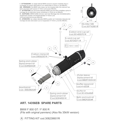 Ljuddämpare reservdel set LeoVince ljuddämparskydd avgassystem, 370 mm, höger