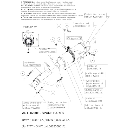 Ljuddämpare reservdel set LeoVince ljuddämparskydd avgassystem FACTORY, 270 mm, höger