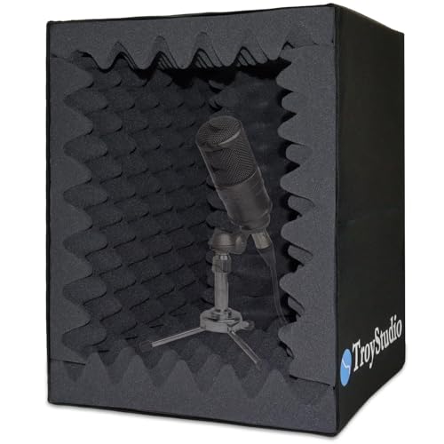TroyStudio Bärbar ljudinspelning sångbåslåda – |Reflektionsfilter och mikrofonisoleringssköld | – | Stor, vikbar, stativmonterbar, supertät ljudabsorberande skum | (liten storlek)