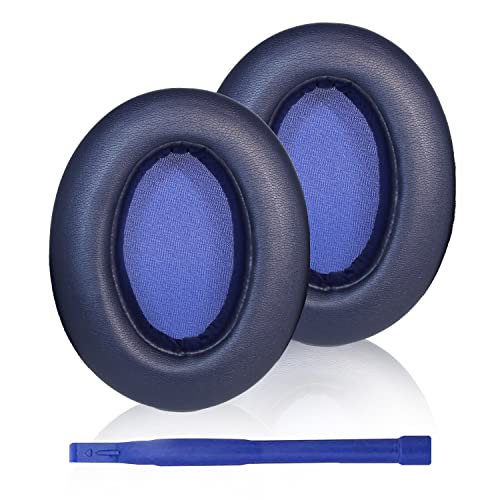Adhiper WH-XB910N öronkuddar, kompatibla med Sony WH-XB910N Over-Ear-hörlurar med och utan kabel, ersättningsöronkuddar av proteinläder och ljudisolerande skum med tryckknappar (blå)