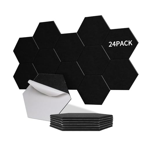 Sonuvia paket med 24 Hexagon akustikpaneler självhäftande, täcker 1,4m²,ljudisolering för väggar och dörrar - 230 kg/m³, NRC 0,95, 100% polyester, idealisk för ljudisolering vägg,svart