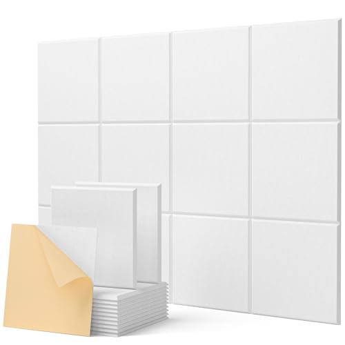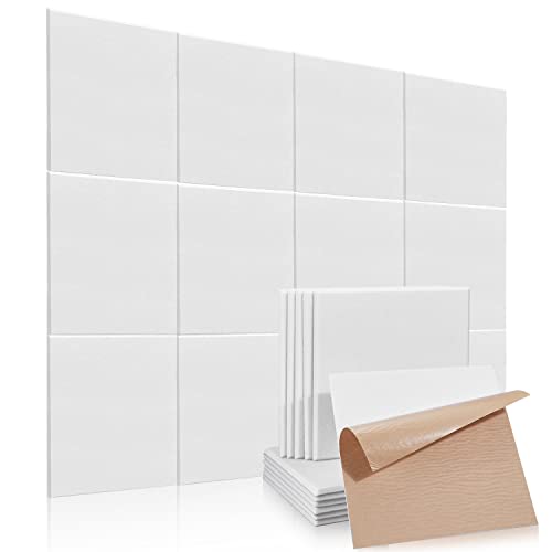 Zeoibou Set med 12 stycken självhäftande akustikplattor för vägg/ljudisolering/vit/30 x 30 x 0,9 cm, akustiska paneler, akustikpanel, för studiokontor, vägg-takdörrar