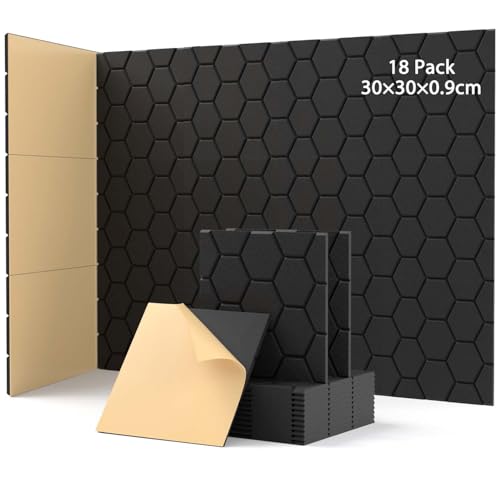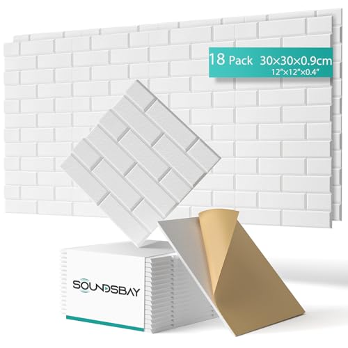 Soundsbay Akustiska plattor, självhäftande, 18 stycken, ljudisolering, ljudisolering, vägg med hög densitet, tegeltyp, ljudisoleringsplattor för akustisk behandling och väggdekoration 30 x 30 x 0,9 cm