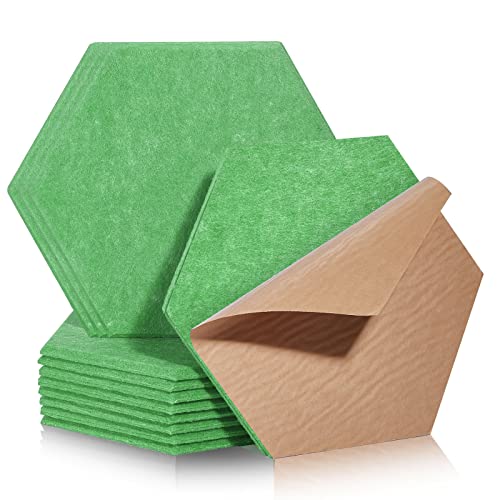 Sexkantiga självhäftande akustikplattor, 12 stycken, ljudisolering med hög densitet, för vägg, tak, trä och dörr – akustikpanel, ljudisoleringsplattor, akustikplatta, 30 x 26 x 0,9 cm, grön