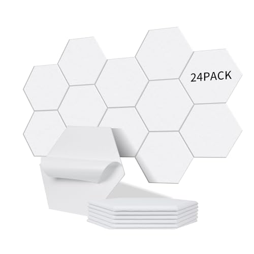 Sonuvia paket med 24 Hexagon akustikpaneler självhäftande, täcker 1,4m²,ljudisolering för väggar och dörrar - 230 kg/m³, NRC 0,95, 100% polyester, idealisk för ljudisolering vägg,porslin vit