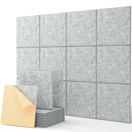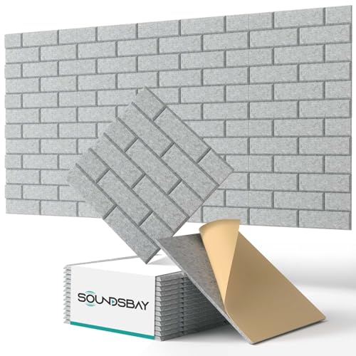 Soundsbay Självhäftande akustikplattor, 12 stycken, ljudisolering, vägg med hög densitet, tegeltyp, ljudisoleringsplattor för akustisk behandling och väggdekoration, 30 x 30 x 0,9 cm (grå)