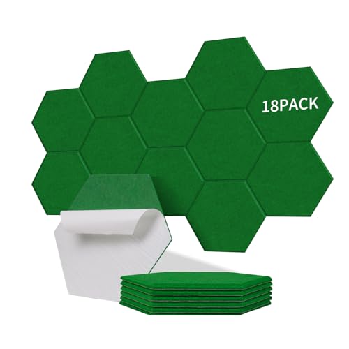Sonuvia paket med 18 Hexagon akustikpaneler självhäftande, täcker 1,05 m²,ljudisolering för väggar och dörrar - 230 kg/m³, NRC 0,95, 100% polyester, idealisk för ljudisolering vägg,smaragdgrön