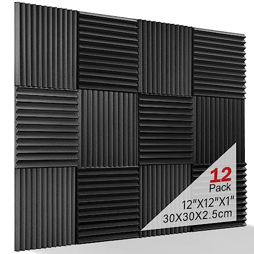 Akustiskt skum, ljudisolering för vägg, 12 st svarta ljudisoleringspaneler för podcasting, inspelningsstudior, kontor, ljudisolering för väggar (30 x 30 x 2,5 cm)