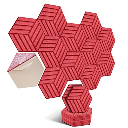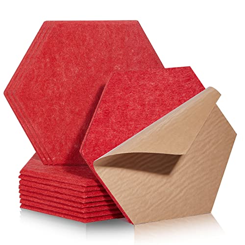 Sexkantiga självhäftande akustikplattor, 12 stycken, ljudisolering med hög densitet, för vägg, tak, trä och dörr – akustikpanel, ljudisoleringsplattor, akustikplatta, 30 x 26 x 0,9 cm, röd