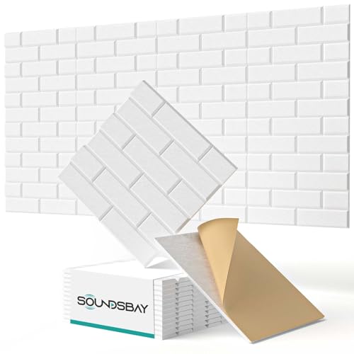 Soundsbay Självhäftande akustikplattor, 12 stycken, ljudisolering, vägg med hög densitet, tegeltyp, ljudisoleringsplattor för akustisk behandling och väggdekoration, 30 x 30 x 0,9 cm (vita)