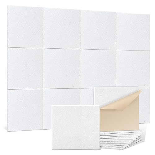 Kvadratiska självhäftande akustikplattor, 24 stycken, ljudisolering med hög densitet, för vägg, tak, trä och dörr – akustikpanel, akustikpaneler, ljudisoleringsplattor, akustikplatta, vit