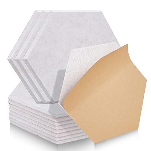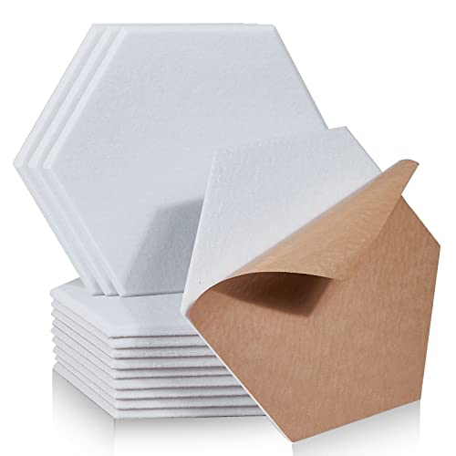 Sexkantiga självhäftande akustikplattor, 12 stycken, ljudisolering med hög densitet, för vägg, tak, trä och dörr – akustikpanel, ljudisoleringsplattor, akustikplatta, 30 x 26 x 0,9 cm (12 stycken, vit)