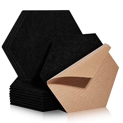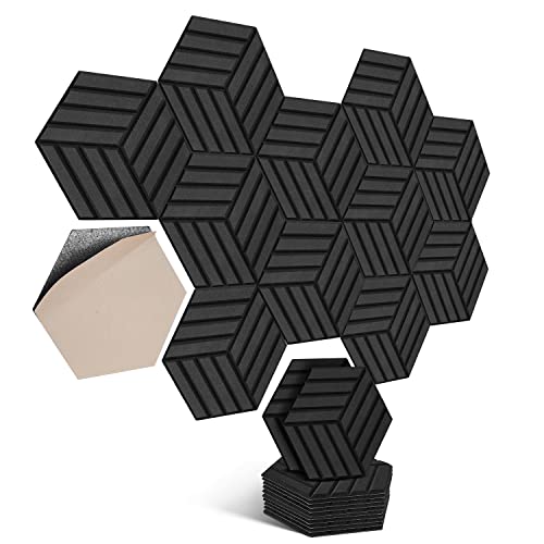 Sexkantiga självhäftande akustikplattor, 12 stycken, ljudisolering med hög densitet, för vägg, tak, trä och dörr – akustikpanel, ljudisoleringsplattor, 30 x 26 x 0,9 cm, ränder, svart
