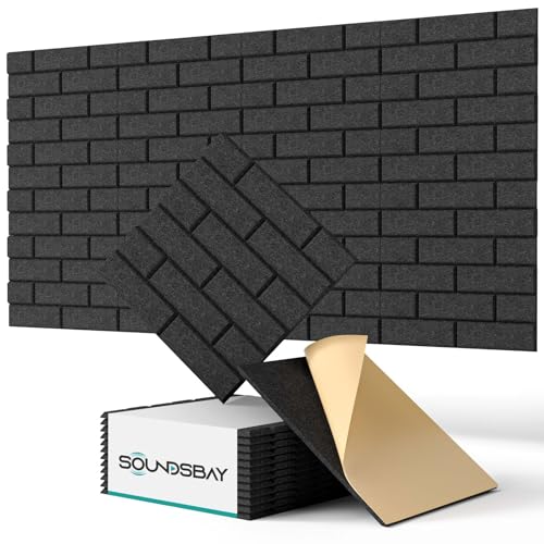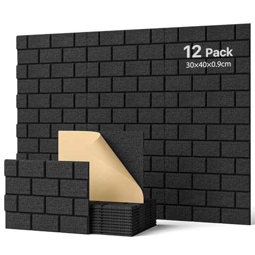Soundsbay Akustiska plattor, självhäftande, 12 stycken, ljudisolering vägg, rektangulär tegeltyp, ljudisoleringsplattor, akustiska paneler för akustisk behandling och väggdekoration 30 x 40 x 0,9 cm