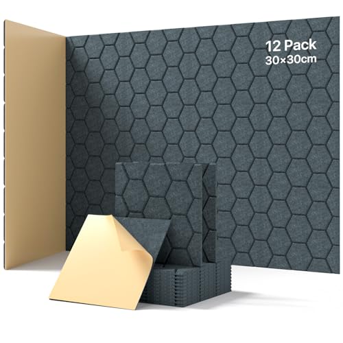 ROVSON Akustiska Paneler Akustikskum, 30x30x5 cm, 12 Stycken, Ljudisolering för Studior, Inspelningsstudior, Kontor, Akustikrum, Ljudisolering Vägg, Inkluderar Fästkuddar