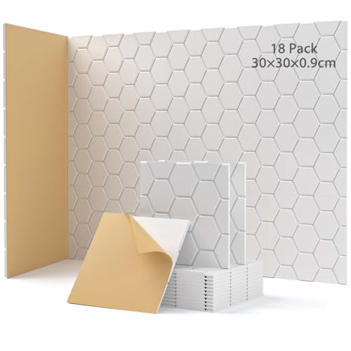 Hexagon akustiska paneler självhäftande 18 stycken akustiskt skum ljudisolering, hög densitet ljudisolering vägg för väggdekoration och akustisk behandling ljudisoleringsplattor vita 30 × 26 × 0,9 cm