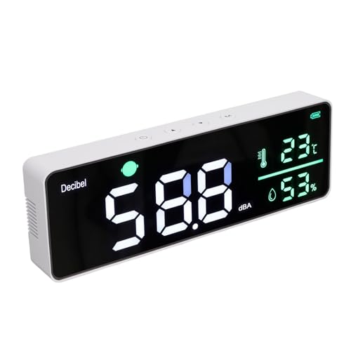 Decibelmätare, 11 Tum Stor LED-skärm 30-130DB Räckvidd för Vägghängande Ljudnivåmätare med Temperaturfuktighet och Klockdisplay, Brusmätare Ljudmätare för Studio, Klassrum