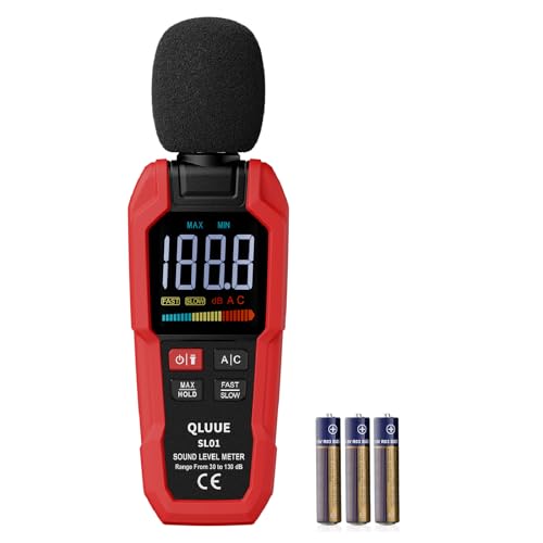 QLUUE Ljudnivåmätare, digital bärbar decibelmätare, 30 dB till 130 dB, A/C-viktad LCD-skärm, kan användas hemma, på fabriken och på vägen