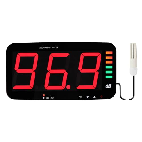 USB Ljudnivåmätare, SW-525B Stor LCD-skärm Ljudmätare med Larm, Vägghängande 9,6 Tum 30-130dB