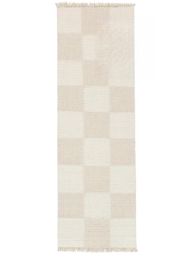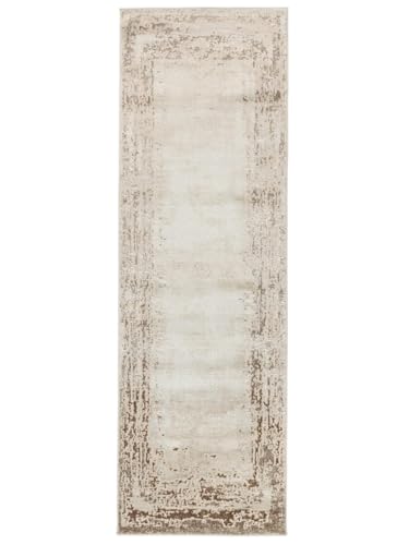 RugVista Cuadro, Matta, 80 x 250 cm, Rektangulär, Medellång lugg, Vardagsrum, Sovrum, Hall, Endast kemtvätt, Ljus beige/Vit