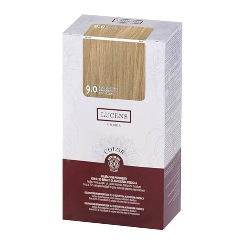 LUCENS permanent färgning, mycket ljus blond 9.0 – hårfärg med hög andel naturliga ingredienser – ingen ammoniak, inga dofter, strålande och långvarig färg