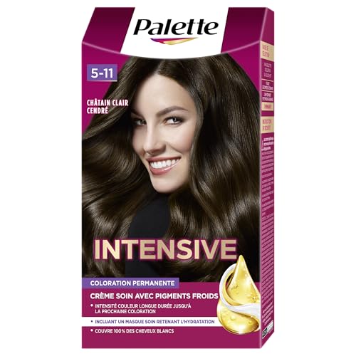 Palette Permanent hårfärg - vårdkräm - täcker 100% vitt hår - 8 veckors hållbarhet - ljus kastanj aska 5.11
