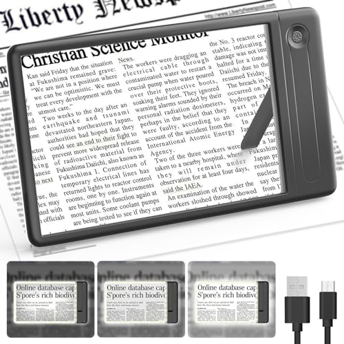 MoKo Upplyst förstoringsglas, 5 x stor helsidig LED-förstoringsglas för läsning, boksidoförstoringsglas med starkt ljus lätt handtag, present till personer med låg syn, äldre föräldrar, seniorer