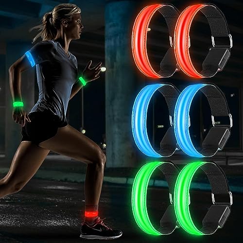 Aicharynic LED-armband batteri, 6 stycken LED reflekterande band, ljusarmband, löparmband, ljusband, barn, ljusband, reflektorband, ljus, barn, nattsäkerhet, ljus för jogging, löpning, sport