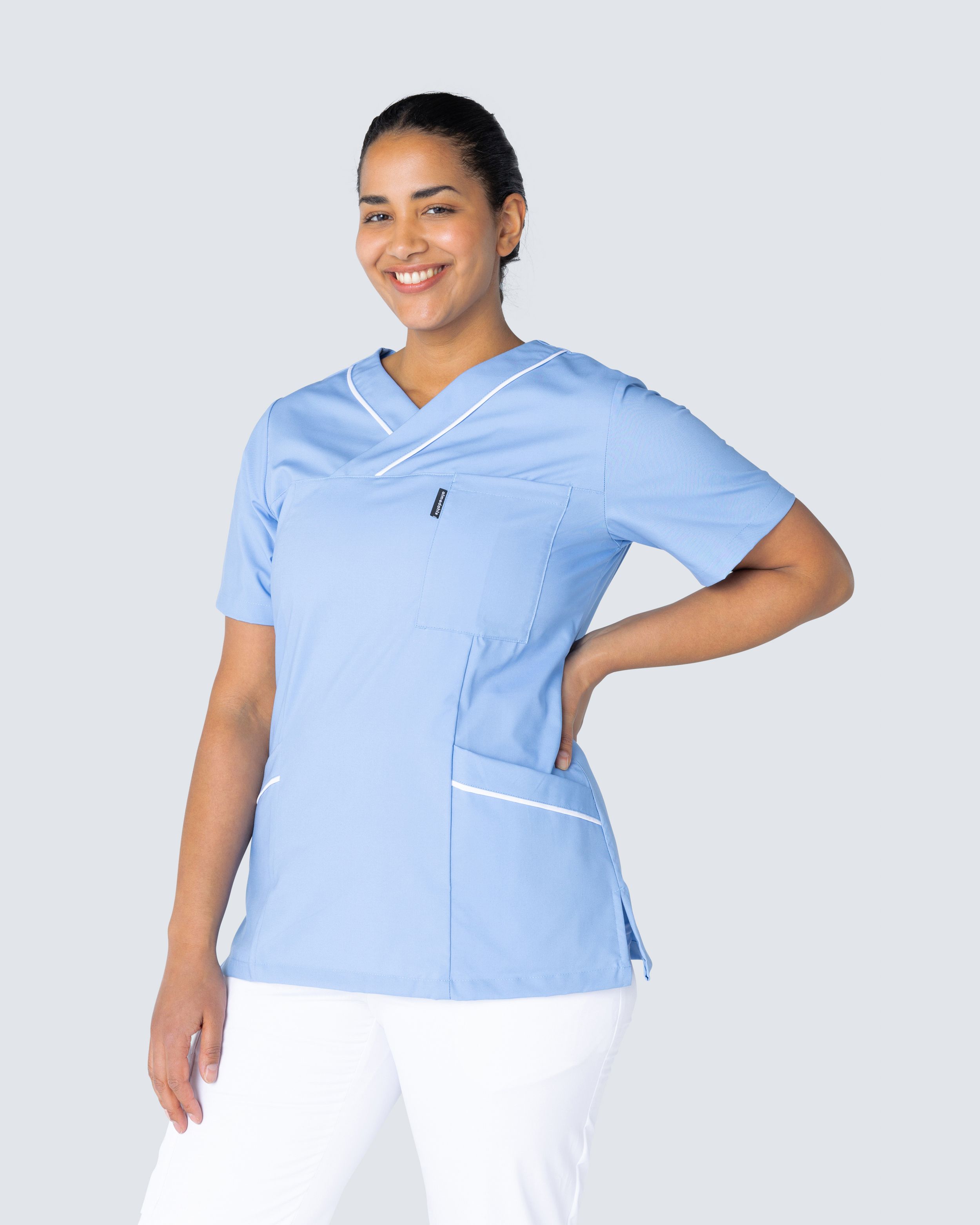 Almedahls Ljusblå/Vit V-blus Dam XXXL