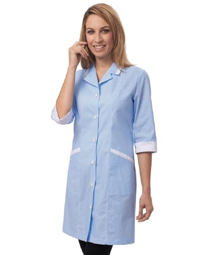 Siggi Horeca Cleo blus, dam, Riga vit/Ljusblå, 3XL