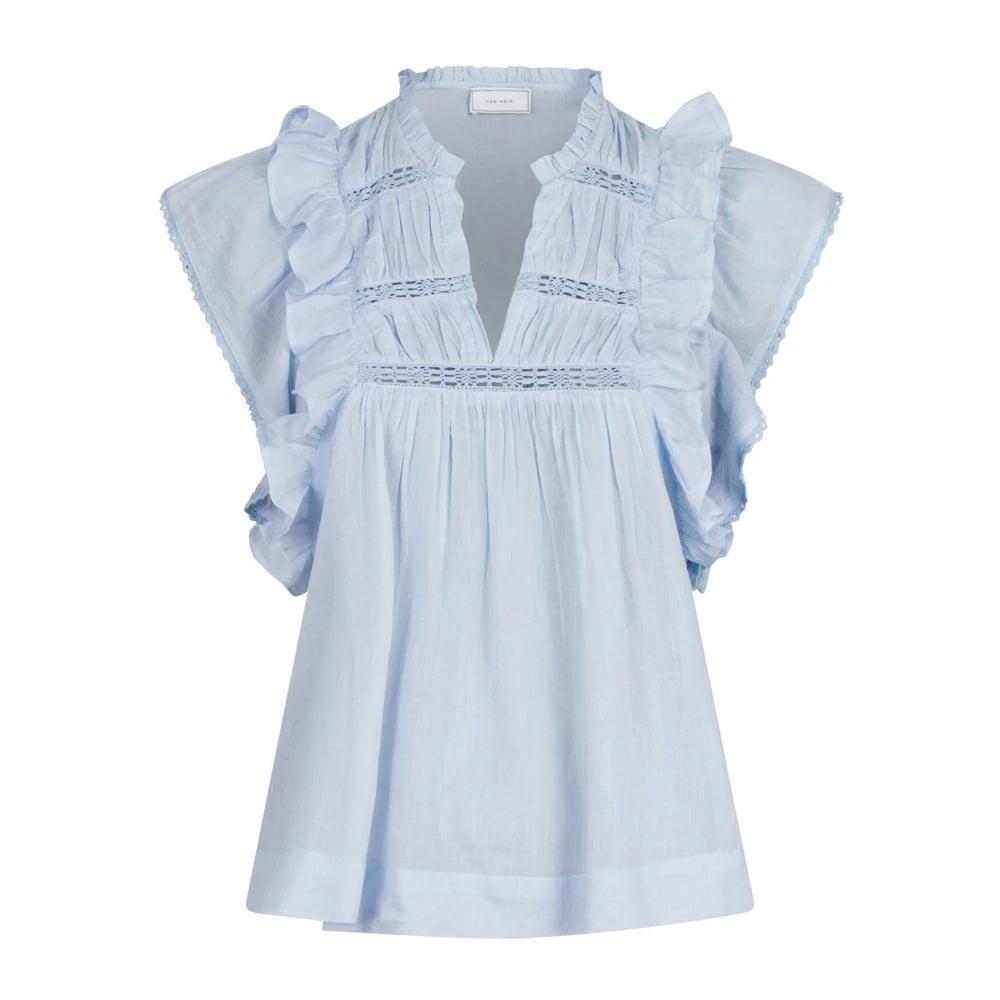Neo Noir, Blusar & Skjortor , Dam, M, Bomull, Ljusblå Blus med Volangärmar