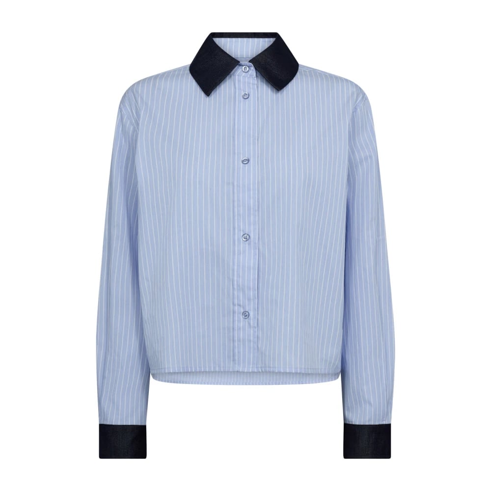 Co'Couture, Blusar & Skjortor , Dam, M, Bomull, Ljusblå Nelsoncc Randig V-ringad Blus