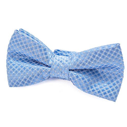 DonDon stilren barn pojkar fluga färdigknuten och längdjusterbar 9 x 4,5 cm ljusblå glänsande med silverprickar