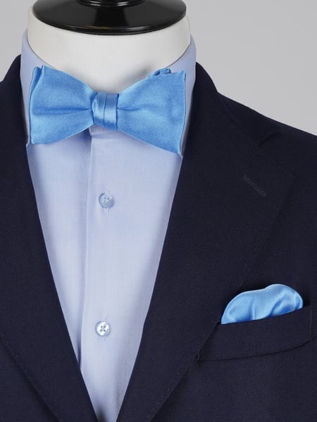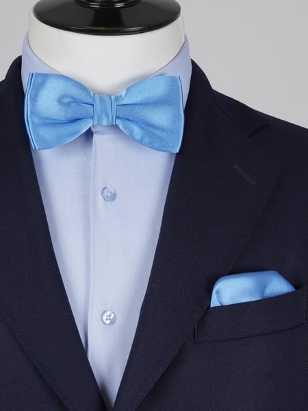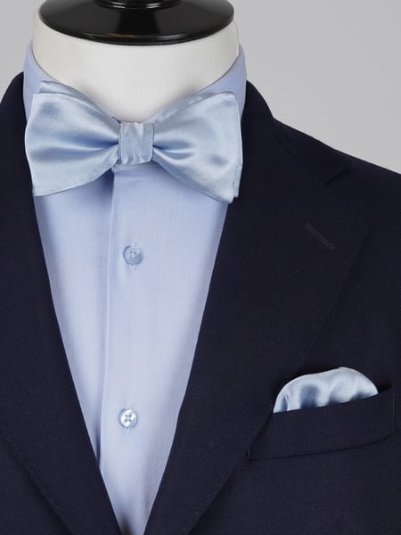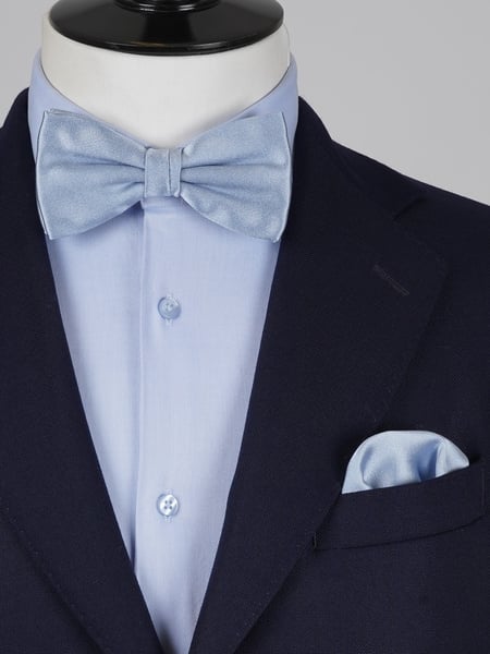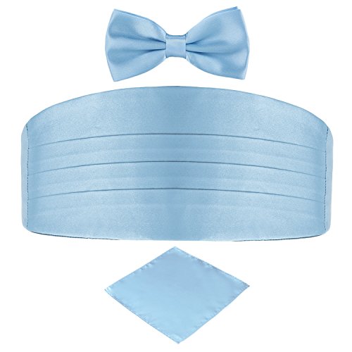 DonDon set om 3 herr maggördel fluga näsduk färgmatchande glänsande för festliga tillfällen - Ljusblå