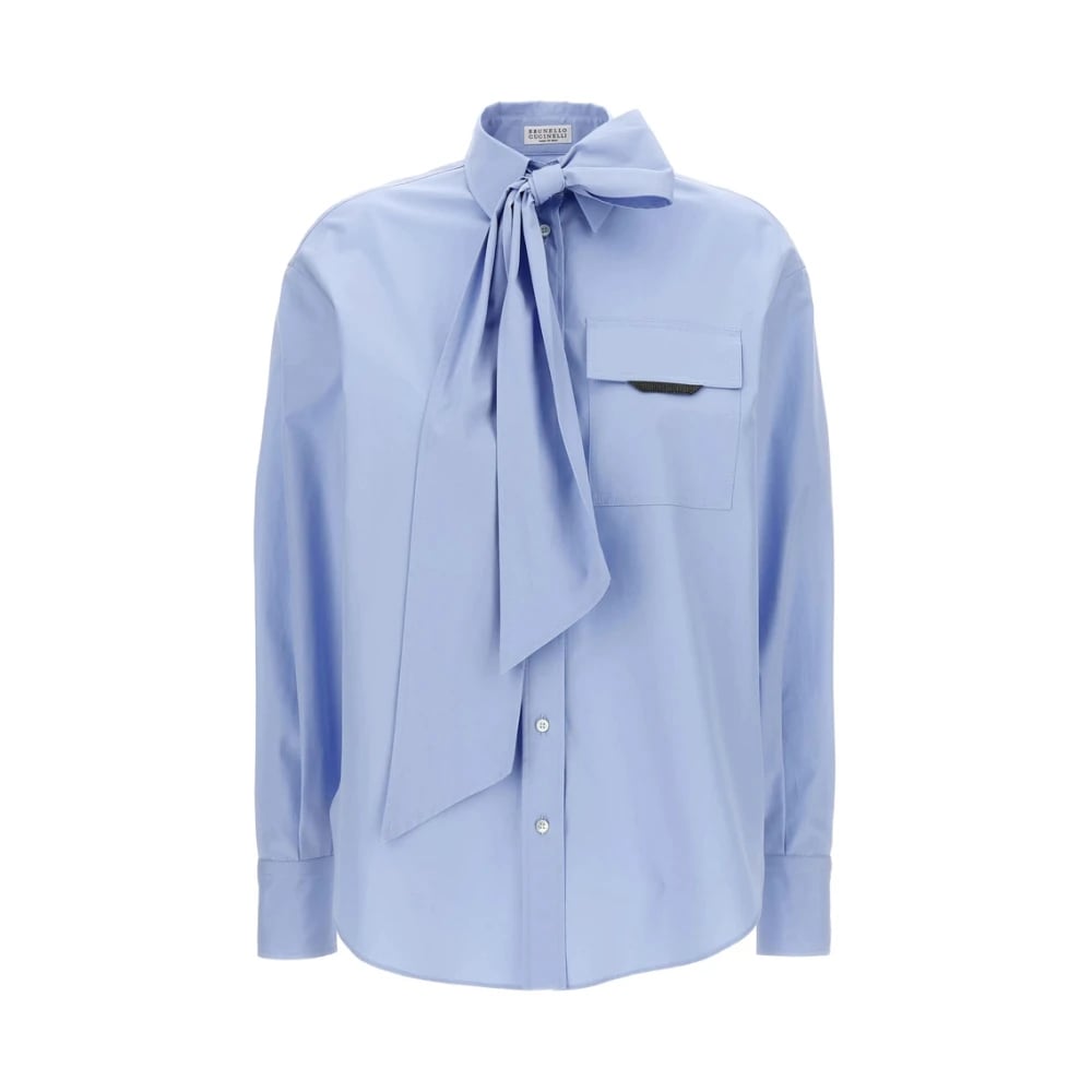 Brunello Cucinelli, Blusar & Skjortor , Dam, L, Ljusblå skjorta med fluga detalj