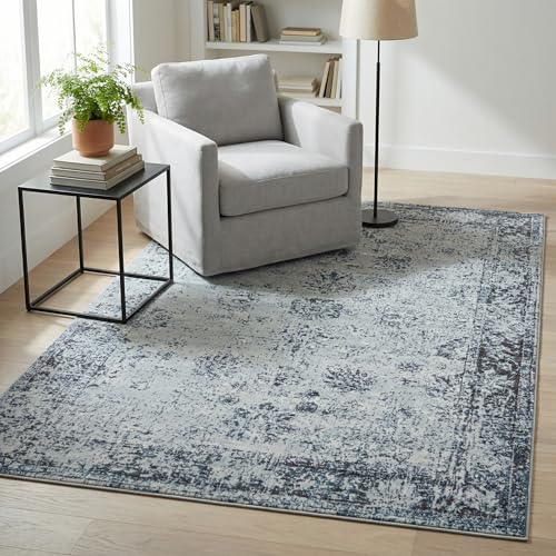 Safavieh Lucy Vintage inspirerad matta, vävd polyestermatta i grå/ljusblå, 90 x 150 cm