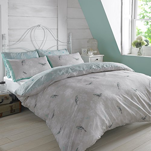 Dreamscene Lyxigt påslakan med fåglar med örngott, polyester/bomull, mint/ljusblå, dubbel, VINTBIRDLB02