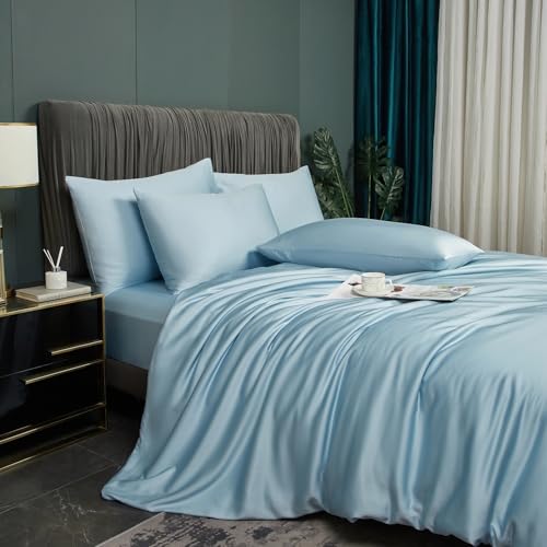 Toyabr Påslakanset 3 delar sängkläder – 60% bomull och 40% Tencel-2 örngott + 1 påslakan – andningsförmåga och lätthet (ljusblå, 135 x 200 cm, 50 x 75 x 1 cm)