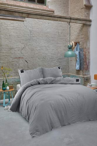 ATsense Sängkläder 155 x 220 cm bomull i 2 delar, sängkläder set ljusblå ÖkoTex-certifierade med linneliknande handtag, andas, 1 påslakan och 1 örngott 80 x 80 cm