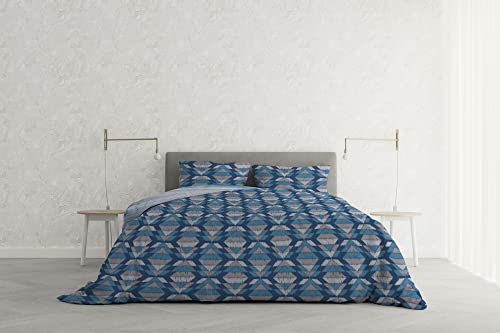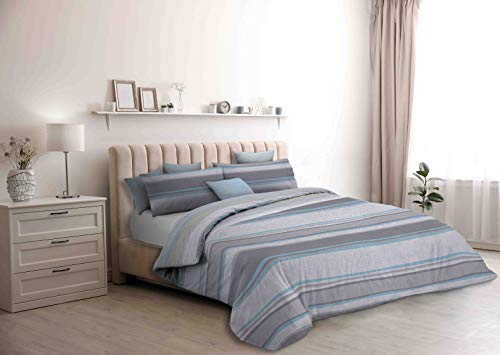 PENSIERI DELICATI Parure Påslakan Singel Flanell 100% Bomull, Väska 155X200 Cm Och Örngott 52X82CM, Tillverkad i Italien, 40° Tvättbart Påslakan I Aten, Mönster Ljusblå