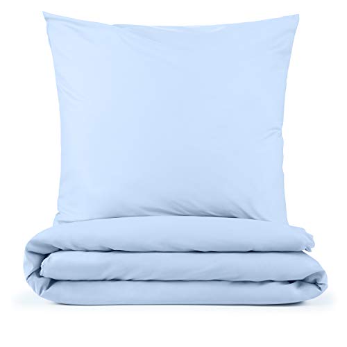 Blumtal sängkläder 135 x 200 cm + 40 x 80 cm örngott – Oeko-TEX förstört. Sängkläder i mikrofiber set – mikrofiberpåslakan upp till 95 °C – påslakan + örngott 2 delar – sommarsängkläder ljusblå