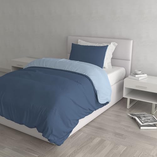 PETTI Artigiani Italiani - Enkelt påslakanset 200x140 cm (1 örngott 63x63 cm ingår), ljusblå enfärgad mjuk påslakan set mikrofiber