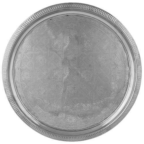 Marrakesch Orientalisk Ramadan dekorativ bricka serveringsbricka rund i mässing 38 cm | ljusbricka Nacera silver som bordsdekoration för kök och vardagsrum | Aesthetic frukostbricka för sovrum
